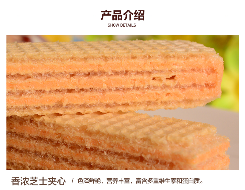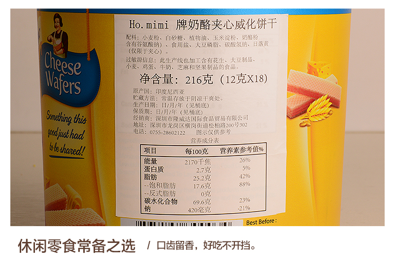 小麥粉、白砂糖、植物油、玉米淀粉、奶酪粉(含有谷氨酸鈉)、食用鹽、大豆磷脂、碳酸氫鈉、日落黃(僅限于夾心)