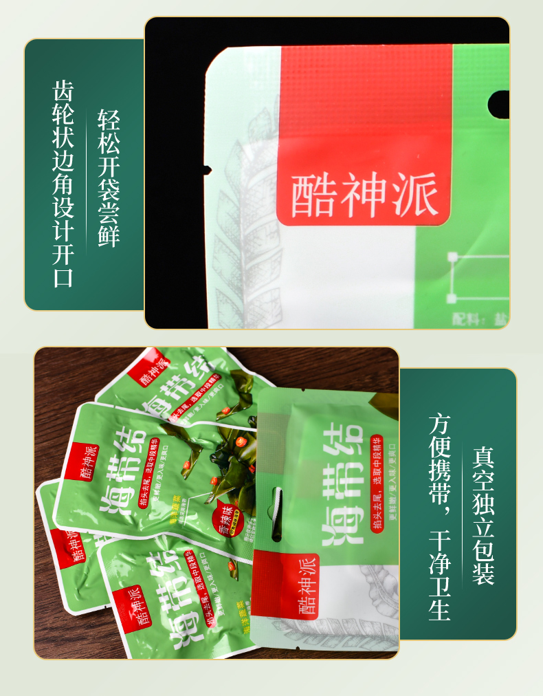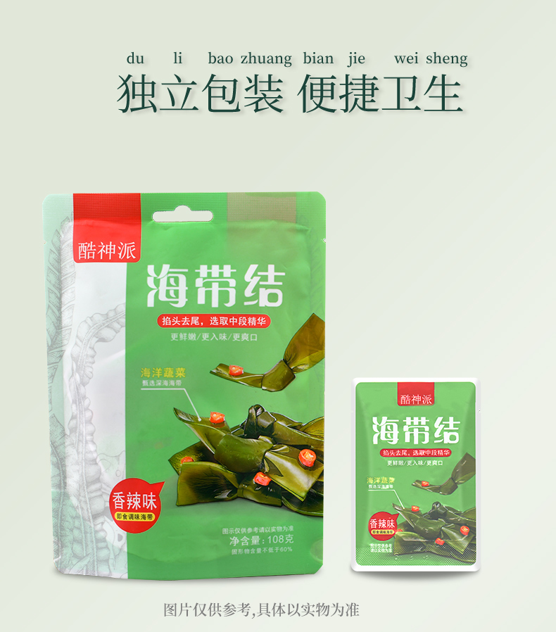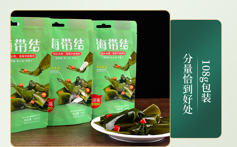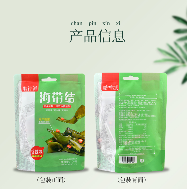 鹽漬海帶(海帶,食用鹽,脫氫乙酸鈉)(≥80%),水,大豆油,食用香精香料,食用鹽,味精,辣椒,黃酒,香辛料,5’-呈味核苷酸二鈉,檸檬酸,冰乙酸,乳酸,D-異抗壞血酸鈉,安賽蜜,山梨酸鉀。