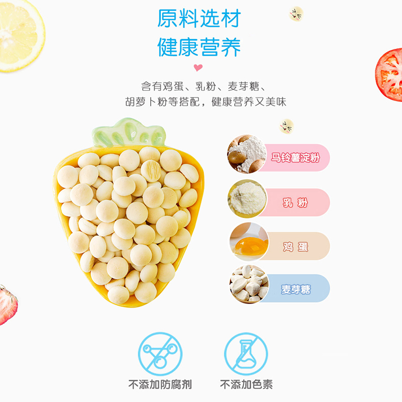 食用馬鈴薯淀粉、白砂糖、雞蛋、乳粉、麥芽糖